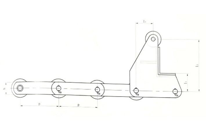 平板輸送機的鏈條,由帶K型附件的滾子套筒鏈和方管鋼組成,該鏈條在負載運行時,滾子和鏈條導軌之間是滾動兼滑動的摩擦運動形式。